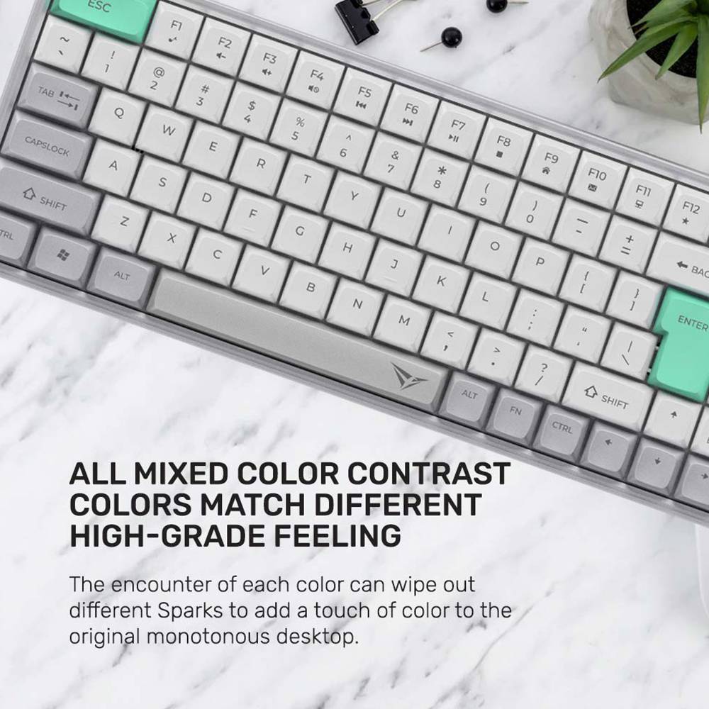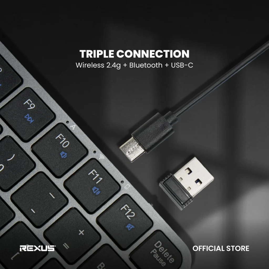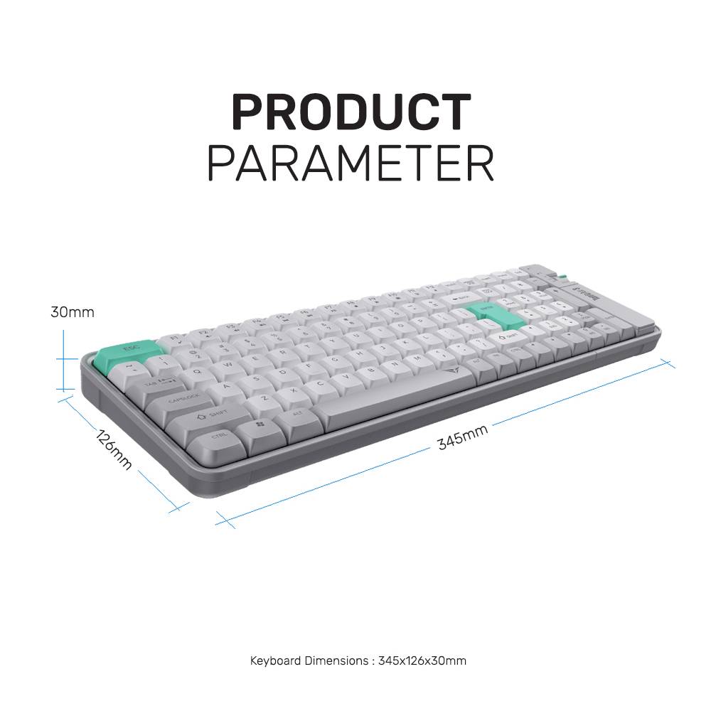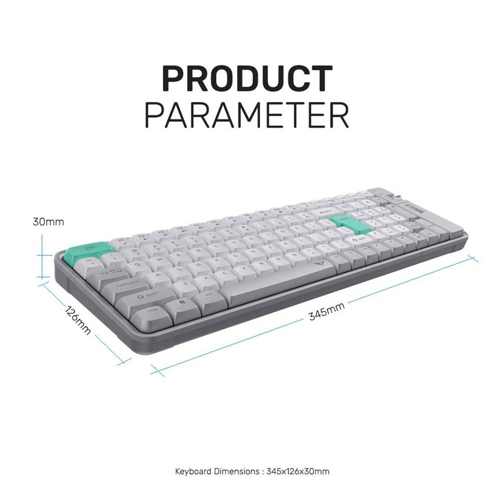 Keyboard ini juga ultra slim dengan desain yang hemat tempat. Kamu bisa menggunakannya baik di kantor maupun secara remote, bahkan bisa bergantian menggunakan koneksi dongle wireless 2,4 G atau Bluetooth. Konstruksi aluminium elegan yang ringan hanya 265 g dengan ketebalan 7 mm. Dengan layout 75% wireless low-profile, keyboard ini compact namun tetap fungsional, menghemat ruang kerja dan memaksimalkan fokus.