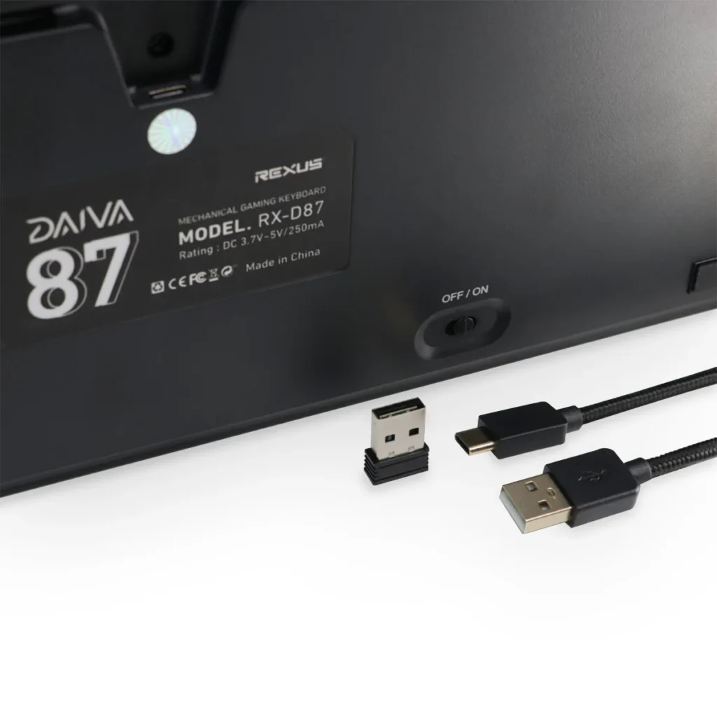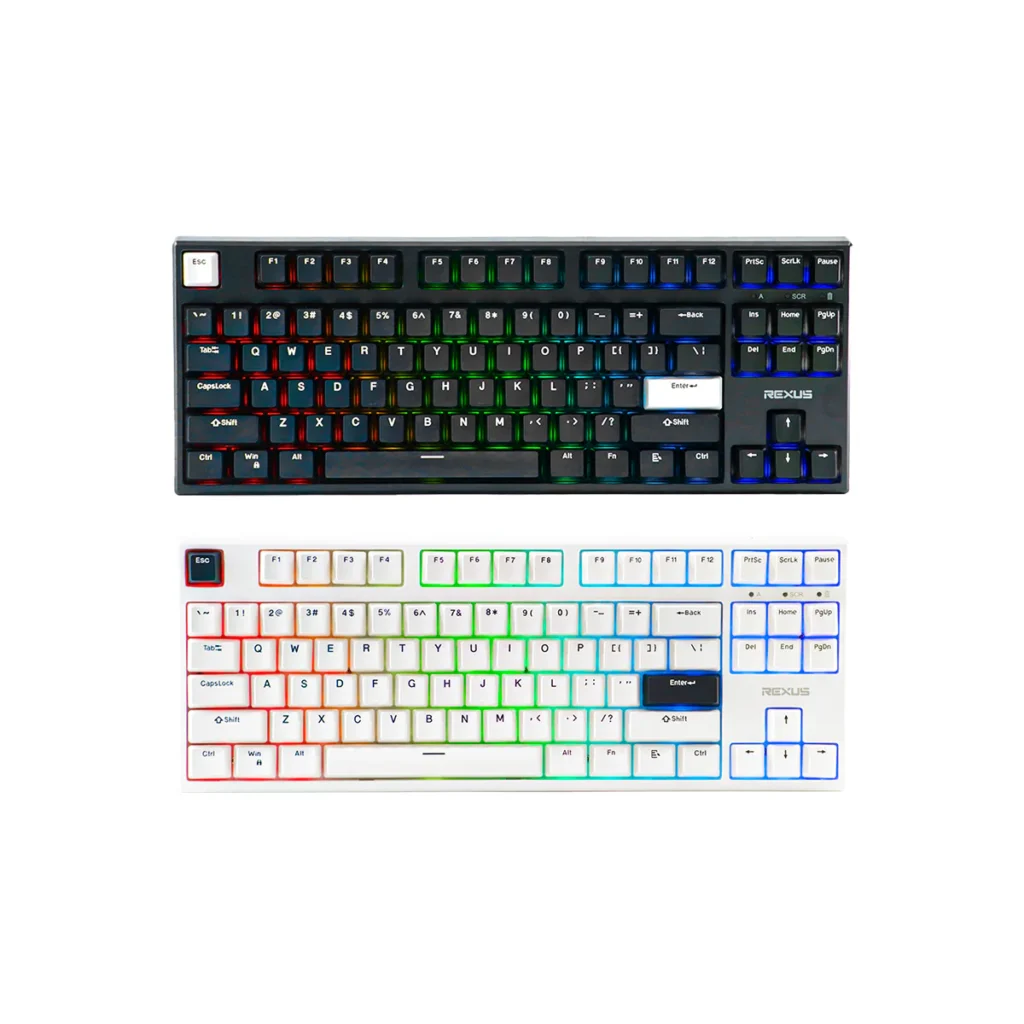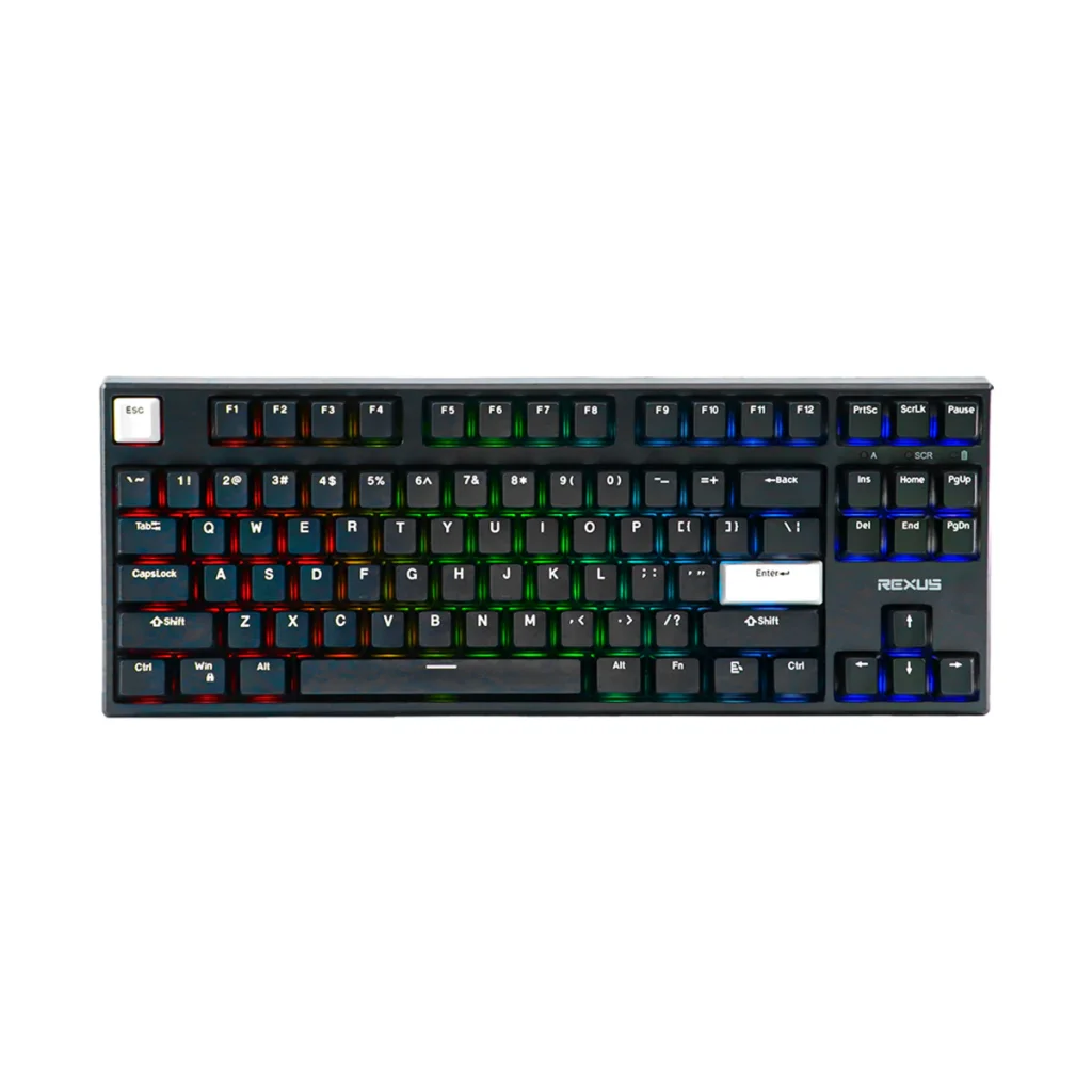 Rexus Daiva D87 merupakan keyboard nirkabel yang estetika dengan 87-Keys TKL Layout yang ringkas namun tetap fungsional. Keyboard ini hadir dengan Elegant Black and White Case serta Dynamic South Facing LED Illumination yang menambah kesan modern. Kamu bisa memilih Versatile Switch Options seperti Outemu Blue, Outemu Brown, atau KTT Kang White sesuai preferensi mengetik. Dengan compact, lightweight, dan build quality yang kokoh, Rexus Daiva D87 juga didukung powerful 2.500 mAh battery.