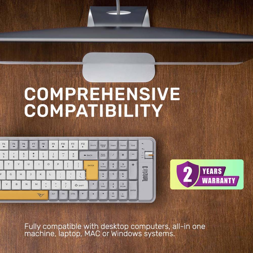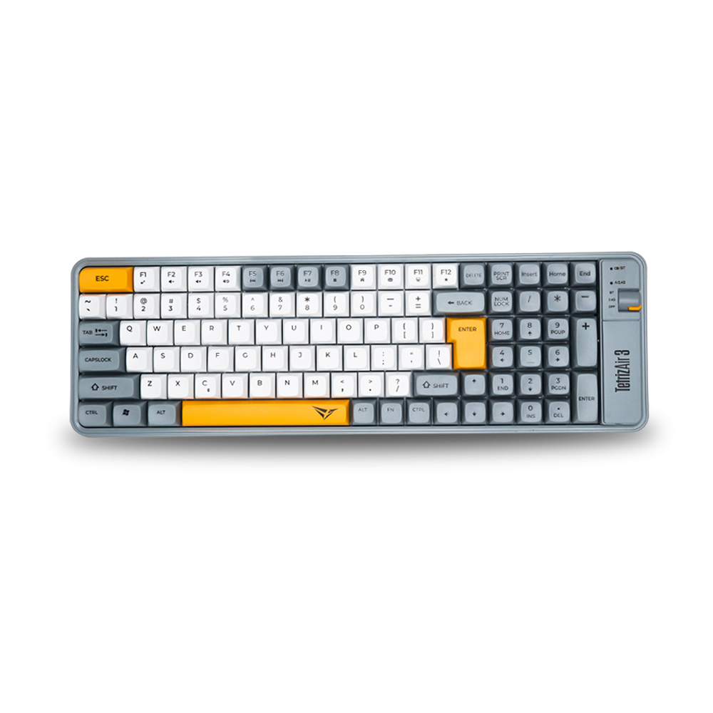 Keyboard ini menawarkan triple connectivity (Bluetooth, 2,4 G, dan kabel) serta keycaps PBT double injection dengan aksen hitam dan putih yang tahan lama. Fitur canggih lain termasuk 3 atau 5-Pin Hotswappable Jwick Socket, stable prelube stabilizer, dan Eva Foam Plate & Case. Kamu juga bisa menyesuaikan tinggi keyboard dengan 2-step adjuster, menikmati vibrant 22 RGB LED lighting, serta mendapatkan 4 switch tambahan gratis dan fitur Music Sync Mode melalui software.
